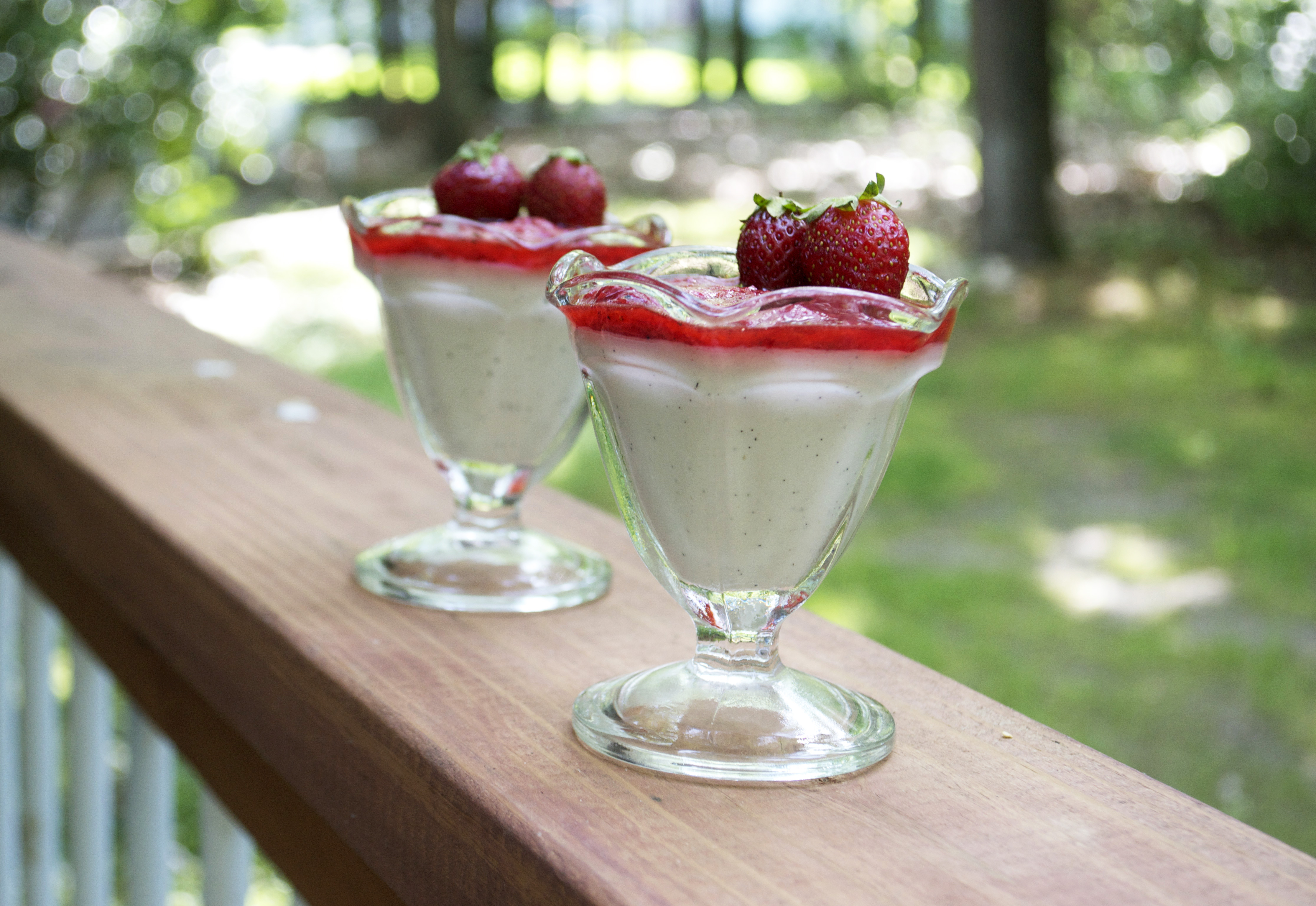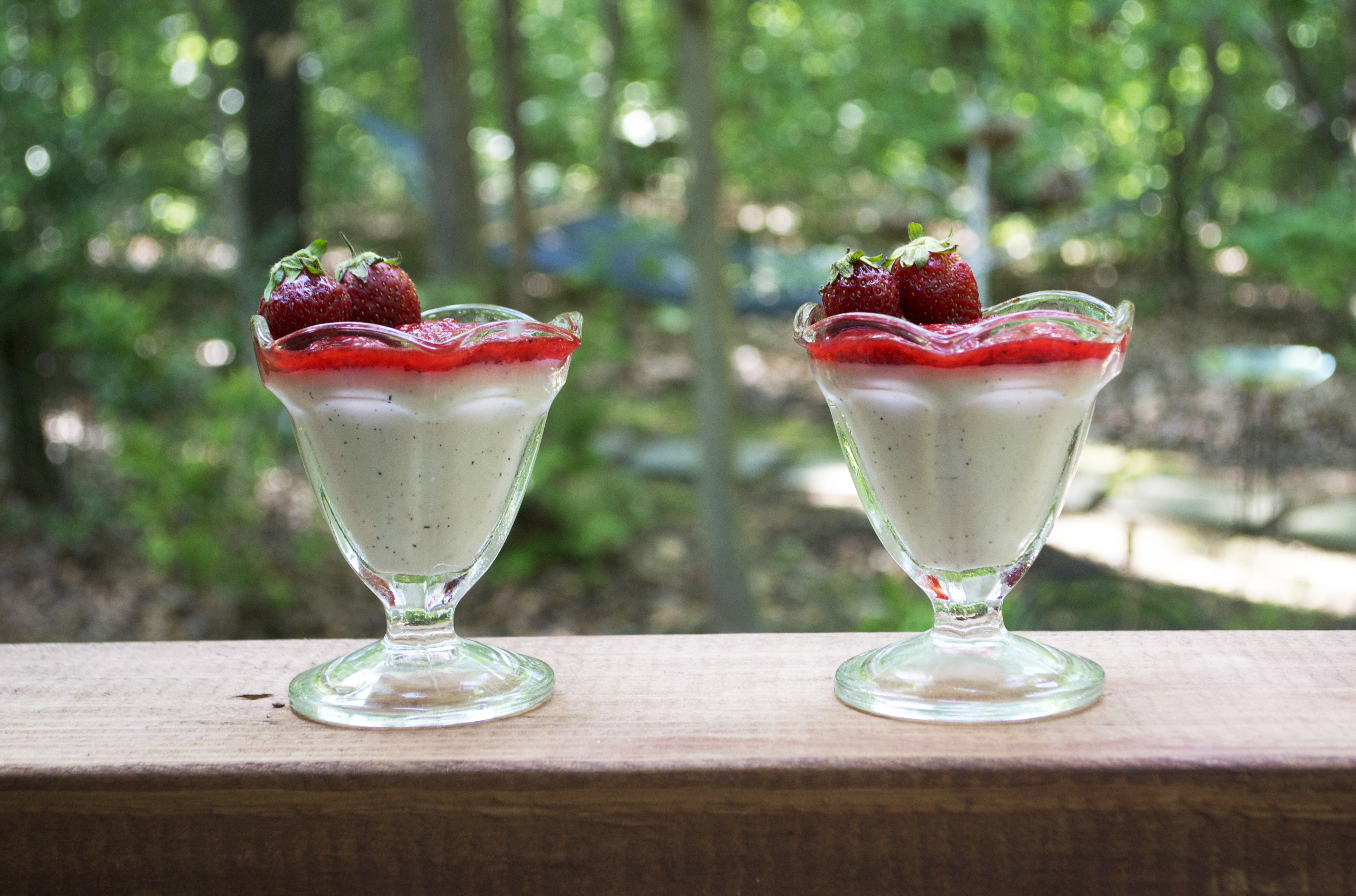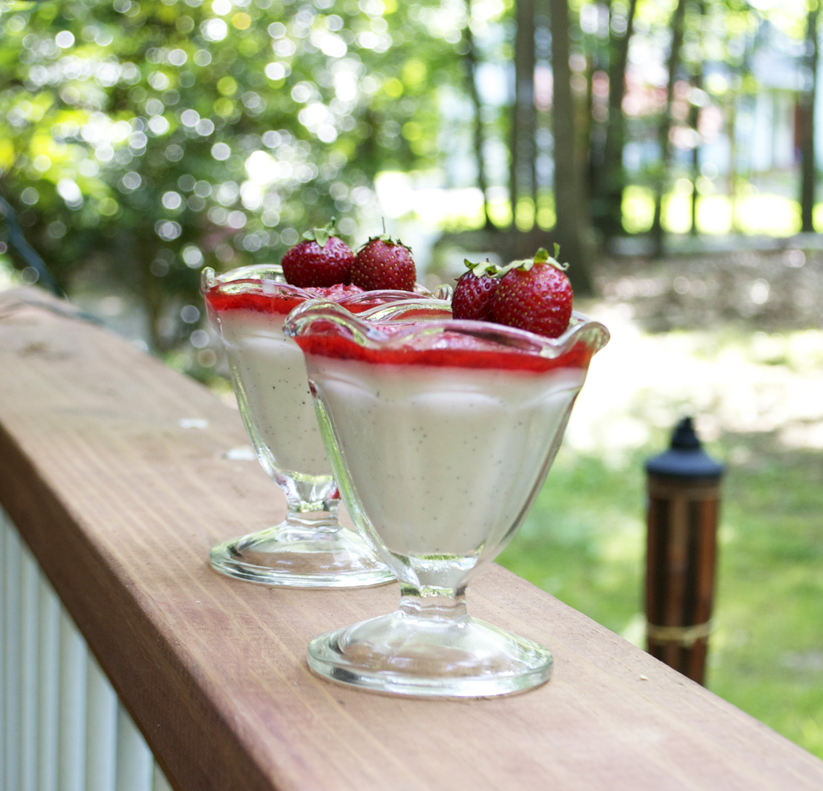 Vanilla Bean Panna Cotta with Strawberry Sauce